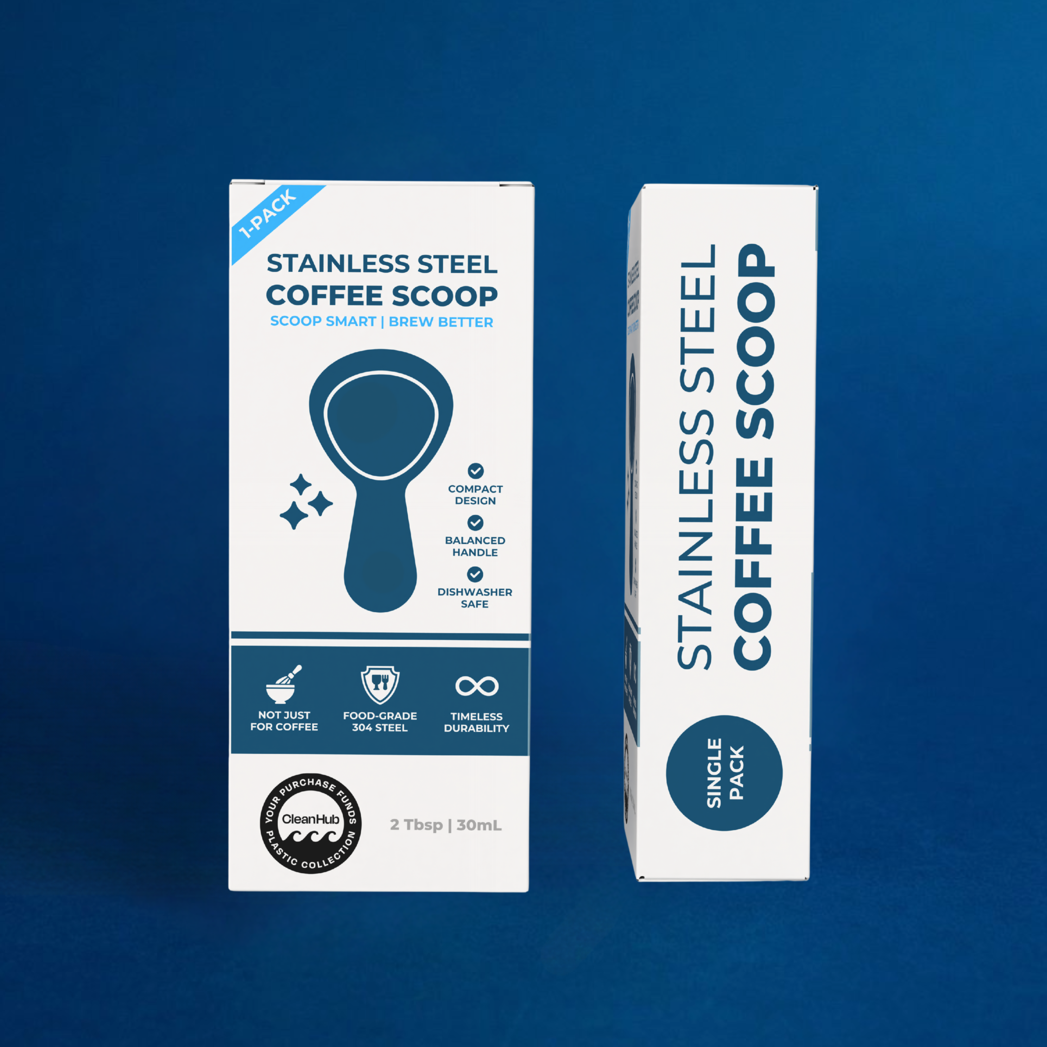 Cute blue octopus holding a hot coffee mug, representing sustainable coffee and ocean-themed designs